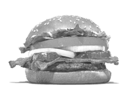 Beef patty, maple-glazed bacon, cheddar cheese, lettuce, caramelized onions.